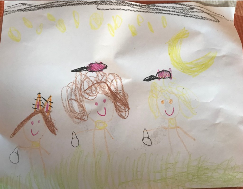 I love when she records what she’s thankful for in a picture. This shows her (on the left) in her cat costume with her older jockey-costumed cousins. I love this so much, and I pray I encourage her to keep recording her own visual memories this way.